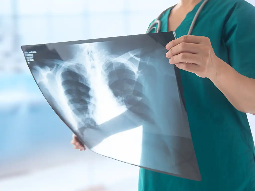 - Duszności i ból w klatce piersiowej: Guz w płucach może uciskać drogi oddechowe lub powodować płyn w jamie opłucnej, utrudniając oddychanie.
