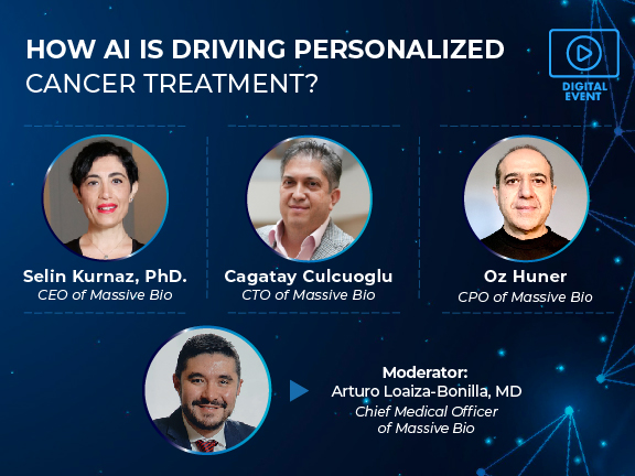In a webinar titled “How Is AI Driving Personalized Cancer Treatment?” several Massive Bio executives gathered for a roundtable discussion about how artificial intelligence (AI) is revolutionizing the delivery of healthcare—with a focus on cancer care and management—by individualizing treatment regimens to achieve better outcomes. This webinar, the first in a new series, was moderated by Arturo Loaiza-Bonilla, MD, Massive Bio’s chief medical officer and co-founder.
